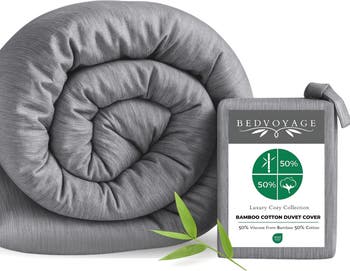 Sleep in comfort with BedVoyage's Melange Duvet Cover—soft, cooling Viscose-Cotton blend, odor-resistant, and durable. Includes duvet cover with corner ties and button closure.