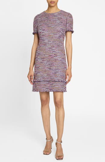 - Short Sleeve Shift Dress in Luxury Tweed with Subtle Sequins