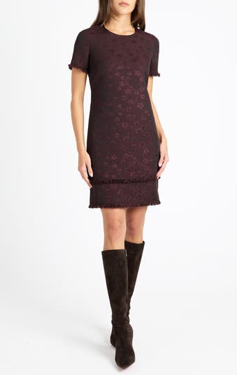 Short Sleeve Shift Dress in Tonal Jacquard