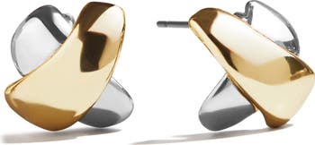 Add something unexpected to your look with these stud earrings featuring a mixed-metal crisscross design that takes every stack to the next level.