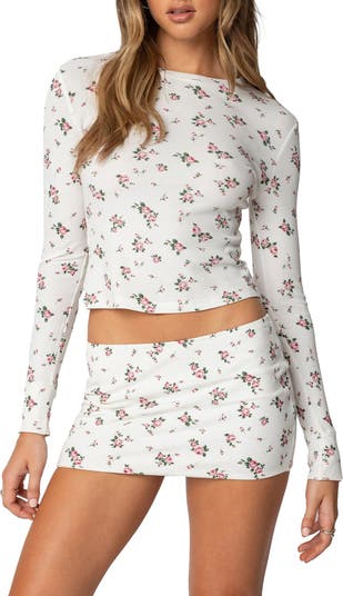 Tiny blossoms scatter across the supersoft thermal knit of this cropped T-shirt cut for a curvy silhouette that skims your figure without fitting too snug.