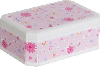 A musical ballerina jewelry box holds all her treasures in style with a pull-out necklace drawer and space for bracelets and rings under the mirrored lid. A pop-up fairy ballerina pirouettes to "Swan Lake" for a perfectly lovely finish.