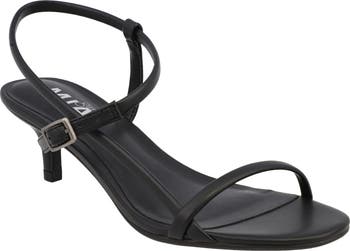 Tubular, asymmetric straps bring subtle dimension to a minimalist sandal shaped from sleek faux leather and set on a tapered kitten heel for a whisper of height.