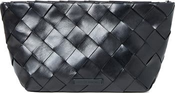 Richly woven leather shapes a spacious clutch lined in soft cotton twill and fastened by a top zipper perfect for securing your small essentials.