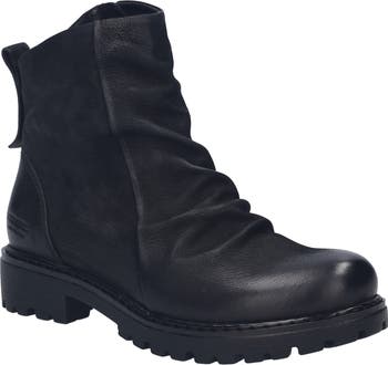 A lightweight lug sole keeps you comfortably grounded in this milled-leather bootie outfitted with a ruched shaft and secured with a side zip closure for easy-on/off.