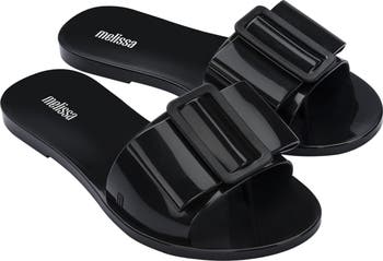 An oversized bow and buckle rest at the vamp of a water-resistant sandal infused with the brand's signature fruity scent for even more poolside pleasure.