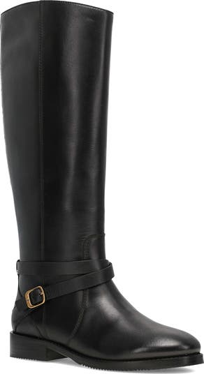 A buckle strap at the ankle accentuates the equestrian style of this knee-high boot fashioned from smooth leather and grounded by comfort cushioning.