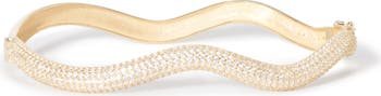 This bracelet is designed with an irregular smooth shape. The crystals create sparks on the wrist that is spectacular.