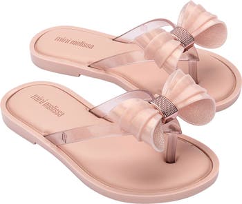 Sparkly bows top the straps of a flexible flip-flop crafted from signature fruit-scented PVC for kid-approved fun and style.