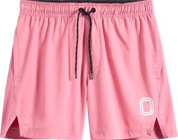 A soft performance construction and a relaxed silhouette define these drawstring shorts stamped with a logo graphic a vented hems.