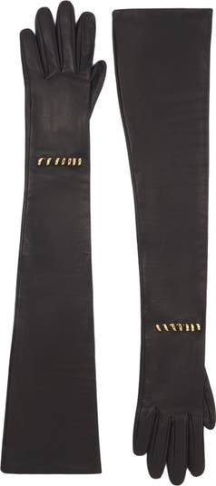 - Long Mélodie gloves crafted in soft nappa leather. Adorned with a Mélodie jewel at the wrists