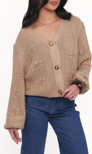 Soft pointelle stitches lend texture and dimension to this relaxed-fit cardigan.
