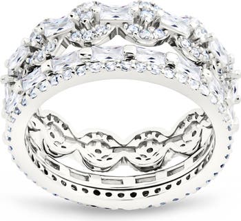 Mixed-cut cubic zirconia bring glamorous sparkle to this sterling-silver ring set that's perfect to stack or show off solo.
