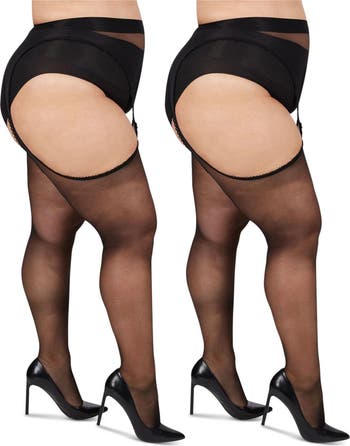 Bold cutouts give a suspender-inspired look to these sheer tights.