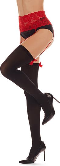 Feel your most alluring in these tights featuring a garter-belt-inspired waistband made of intricate lace with attached straps.
