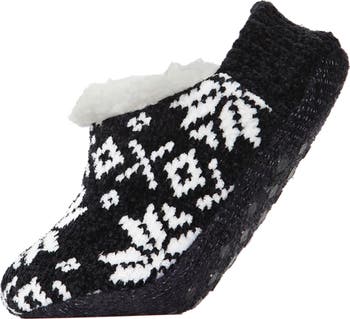 Rule your cozy empire after hours in these superplush fleece-lined socks knit in a Nordic pattern and finished with nonslip grip for steady stepping.