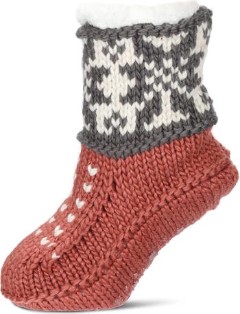 A fuzzy fleece lining keeps you feeling extra cozy in these slipper socks with a pretty snowflake pattern.