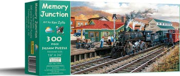 Take a mesmerizing journey back in time and experience an aura of nostalgia with the Memory Junction 300 Piece Jigsaw Puzzle from SunsOut. Rendered by the impressive brushwork of Ken Zylla, this puzzle featuring a charmingly quaint train station scene presents both adults and children with a splendid balance of challenge and tranquility. The completed puzzle measures 16” x 26”. SunsOut puzzles are celebrated for their exceptional craftsmanship, employing interlocking pieces that assure a gratifying and smooth fit. Manufactured from high-quality recycled cardboard and environmentally friendly soy-based inks, each piece radiates vibrancy and durability. Assemble and appreciate this masterpiece, conscientiously made in the USA. Zylla’s licensed artwork injects nostalgia into your puzzle-solving experience, transporting you to a bygone era, with intricate train and station details. By using eco-conscious materials and employing sustainable production processes, SunsOut allows you to indulge your love for puzzles guilt-free. The company's customer satisfaction guarantee highlights its commitment to quality, swiftly addressing any issues related to missing or damaged puzzle pieces. Embark on this journey with the Memory Junction 300 Piece Jigsaw Puzzle, a fascinating world that makes the past manifest before your eyes, suitable for seasoned and novice puzzle enthusiasts alike. Order now and let the adventure commence!