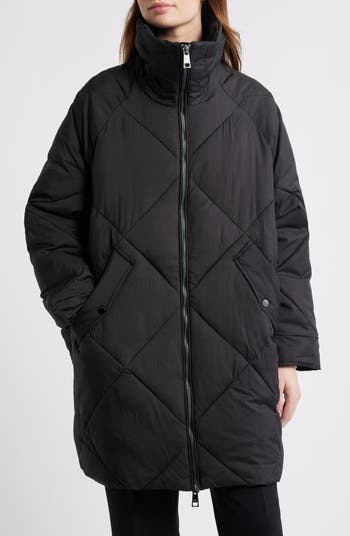 Made in a swingy, roomy silhouette from water-repellent nylon, this quilted, insulated jacket makes going out in the rain almost as cozy as viewing it from the warm and dry indoors.