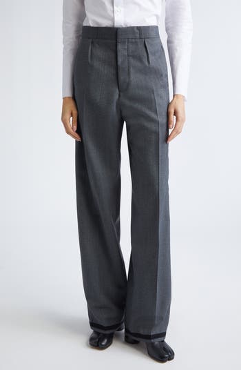 Margiela's subversive tailoring shows through in these fluid wool-blend herringbone pants that explore the maison's 'memory of the hem' concept with contrast panels that hint at the garment's history. The brand's discreet yet distinct four-stitch moniker adds an in-the-know touch at the back waist.