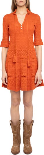 Banana-inspired paisley details and mixed pointelle stitches softly pattern this lightweight cotton dress made with tassel-tipped ties.