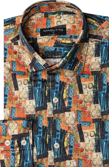A printed shape-fit sport shirt made from satin and breathable cotton for easy movement.