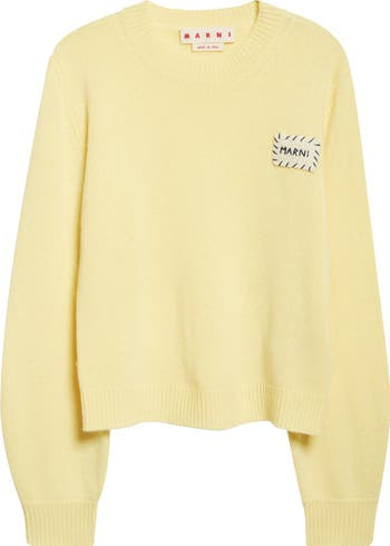Outlined in haphazard whipstitching, a hand-embroidered 'mending' logo evokes the eclectic, homespun character of Marni's recent seasons on this relaxed crewneck sweater knit from cloud-soft Italian cashmere.