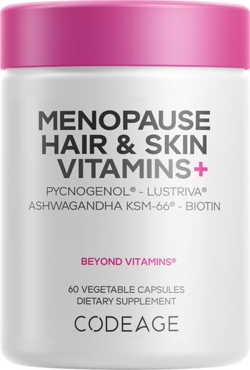 - Codeage Hair Skin vitamins+ for the age of menopause also provides 10,000 mcg of Biotin supplement and features KSM-66® Ashwagandha, a clinically studied ingredient for its role in supporting women through perimenopause and midlife changes.*