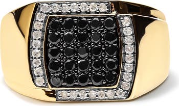 Men's 10K Yellow Gold 1.00 Cttw Cushion Cluster Black and White Diamond Statement Ring