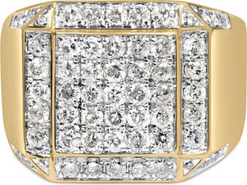 Men's 10K Yellow Gold 2 1/8 Ctw Diamond Composite Cluster Cocktail Ring Band