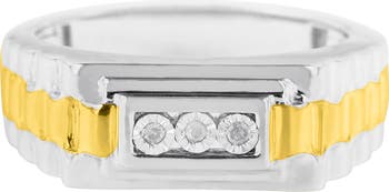Men's 10K Yellow Gold Plated Silver Diamond Accent 3 Stone Ridged Band Ring