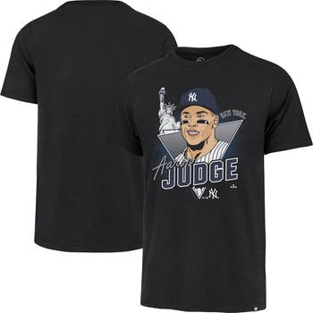 Show your excitement for another New York Yankees run to the postseason with this Player Caricature Franklin T-Shirt from '47. This comfortable tee features vibrant graphics depicting the Yanks' superstar, Aaron Judge, ready to go deep with bases loaded. The tagless neck label ensures all-day comfort, while the ribbed neckline helps maintain the shirt's shape, wash after wash. This eye-catching tee is the perfect way to show your support for Judge as he helps the team chase a World Series title.