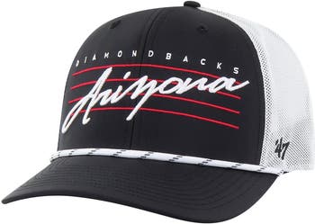 Show off your Arizona Diamondbacks pride with this '47 Downburst Trucker Adjustable Hat. This stylish hat features the Arizona Diamondbacks name embroidered in raised detail across music scale lines on the front, adding a unique and eye-catching element to your game day look. With two solid front panels and four mesh mid and rear panels, this hat provides optimal breathability and comfort.