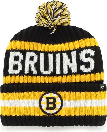 Stay warm while supporting your Boston Bruins in this '47 Bering Cuffed Knit Hat with Pom. The embroidered team logo with raised details on the cuff adds a touch of Boston Bruins pride, while the knit franchise name around the crown makes a bold statement. Fleece lining provides added warmth and softness, ensuring you stay cozy and comfortable all game long.