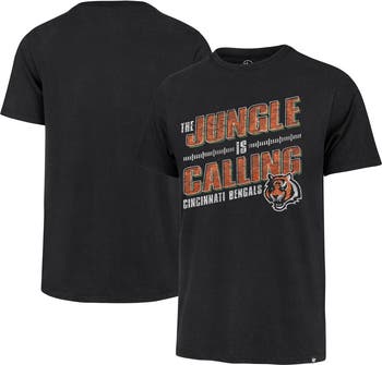 The Men's '47 Black Cincinnati Bengals Regional Franklin T-shirt is a must-have for devoted Cincinnati Bengals fans. Distressed screen print graphics proudly display unwavering support for the Bengals, while comfortable cotton material ensures all-day comfort. Whether cheering from the stands or showing team spirit, this T-shirt perfectly represents the Cincinnati Bengals.