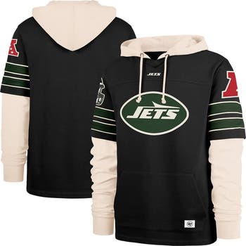 Show off your unwavering loyalty to America's Team with this New York Jets Split Zone Cornerback Duo Hoodie from '47. Crafted with a soft French terry lining, this midweight hoodie is perfect for moderate temperatures and provides cozy comfort all day long. The embroidered team name on the front and layered, two-tone look showcases your New York Jets pride in a stylish way.