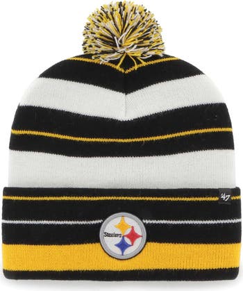 Liven up your winter wardrobe with this Pittsburgh Steelers Powerline cuffed knit hat from '47. It features the team logo in raised embroidery and a matching stripe design. A multicolor pom completes the vibrant look of this Pittsburgh Steelers headwear.