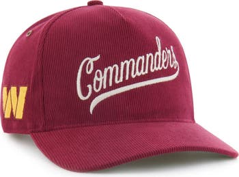 Celebrate the legacy of the Washington Commanders with this Golden Age Corduroy Hitch Adjustable Hat from '47.Featuring a retro-inspired silhouette with a pinched five-panel crown, this hat combines vintage charm with modern comfort. The team wordmark embroidered across the front proudly displays your Washington Commanders pride, while the corduroy fabric and contrast color undervisor add unique style.