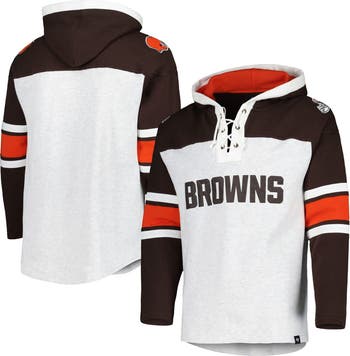 Men's '47 Cleveland Browns Heather Gray Gridiron Lace-Up Pullover Hoodie