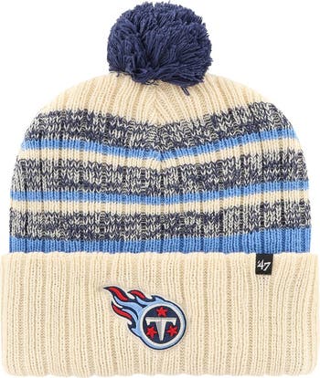 Liven up your winter wardrobe with this Tennessee Titans Tavern cuffed knit hat from '47. It features an embroidered team patch and a matching stripe design. A solid pom completes the vibrant look of this Tennessee Titans headwear.