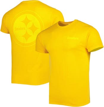 The Men's '47 Gold Pittsburgh Steelers Fast Track Tonal Highlight T-shirt is a must-have for loyal Pittsburgh Steelers fans. Screen-printed graphics with tonal details proudly showcase unwavering support for the Steelers. Comfortable cotton material and a rib-knit collar ensure a perfect fit, making it ideal for game days or expressing Steelers pride.