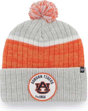 Keep your head warm in cooler temperatures in striking Auburn Tigers fashion with this Cuffed knit hat with pom from '47. It features a simple and sweet woven design with a fun pom on top and a bold embroidered Auburn Tigers graphic on the cuff. Add the perfect finishing touch to your outfit on a cooler day and take on the day with confidence.