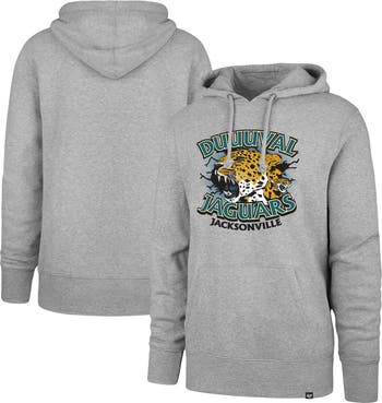 The Men's '47 Gray Jacksonville Jaguars DUUUVAL Regional Headline Pullover Hoodie is the ultimate way to show unwavering support for the Jacksonville Jaguars. Crafted from a soft cotton and polyester blend, this midweight hoodie ensures comfort and warmth on chilly game days. The screen-printed graphics boldly display the iconic "DUUUVAL" slogan, a testament to unwavering loyalty to the Jaguars. Whether cheering from the stands or showcasing team spirit, this hoodie represents the Jacksonville Jaguars in style.