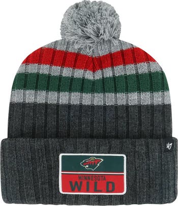 To show team spirit while keeping warm, sport this cuffed '47 Stack hat. A knit design supplies the ideal coverage, stretch and warmth for the ultimate fit. A striking Minnesota Wild applique, coordinating stripes and a top pom combine for a charming accessory.