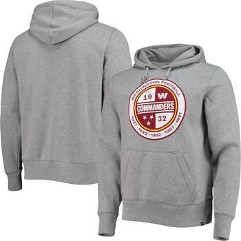 The Men's '47 Gray Washington Commanders Imprint Headline Pullover Hoodie is the perfect way to show your support for the Washington Commanders. Made from a comfortable cotton and polyester blend, this midweight hoodie features a front pouch pocket, a hood with a drawstring, and rib-knit cuffs and hem. The screen print graphics proudly display the Washington Commanders logo, making this hoodie a must-have for any fan. Whether you're cheering on the Commanders at the stadium or just relaxing at home, this hoodie will keep you comfortable and stylish.