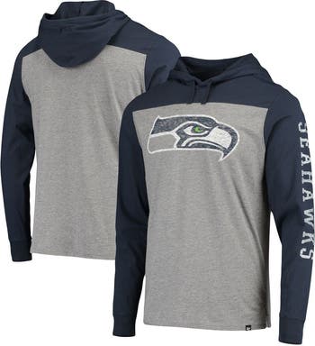 The '47 Heathered Gray/Blue Seattle Seahawks Franklin Wooster Long Sleeve Hoodie T-Shirt is the perfect way to show your unwavering support for the Seattle Seahawks. With its distressed screen print graphics and comfortable cotton-polyester blend, this hoodie will keep you warm and stylish on game day or any day. The hood with drawstring and side splits at the waist hem add a touch of functionality and style. Whether you're cheering from the stands or just hanging out, this hoodie is a must-have for any true Seattle Seahawks fan.
