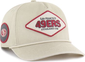 Show your allegiance to the San Francisco 49ers in vintage-inspired style with this Cairn Adjustable Hat from '47. The Hitch line of caps feature a retro silhouette with a pinched five-panel crown and a distinctive braided rope cord. Constructed from garment-washed cotton, this hat offers a comfortable, worn-in fit and feel that's perfect for game day or everyday wear. The embroidered, throwback graphics on the front and right side with the established year add classic team spirit to a hat worthy of kickoff.