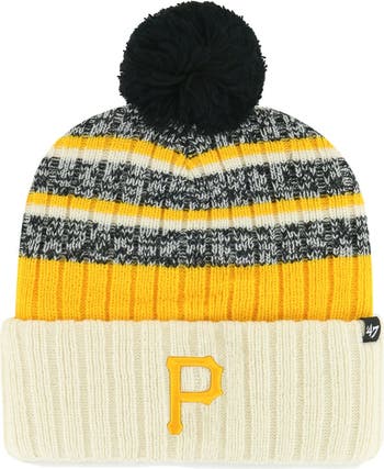 To show Pittsburgh Pirates spirit while keeping warm, sport this cuffed '47 Tavern hat on chilly game days. A knit design supplies the ideal coverage, stretch, and warmth for the ultimate fit. Fresh Pittsburgh Pirates graphics, coordinating colors, and a pom top combine for a charming accessory.