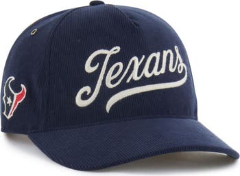 Celebrate the legacy of the Houston Texans with this Golden Age Corduroy Hitch Adjustable Hat from '47.Featuring a retro-inspired silhouette with a pinched five-panel crown, this hat combines vintage charm with modern comfort. The team wordmark embroidered across the front proudly displays your Houston Texans pride, while the corduroy fabric and contrast color undervisor add unique style.