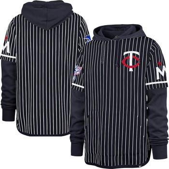 Bring a vintage aesthetic to your Minnesota Twins fandom with this '47 Pinstripe Double Header Pullover Hoodie. This hoodie boasts a classic pinstripe design, adding a touch of vintage charm to your Minnesota Twins game day look. The embroidered fabric applique graphics proudly displays your team spirit, ensuring you stand out in the crowd.